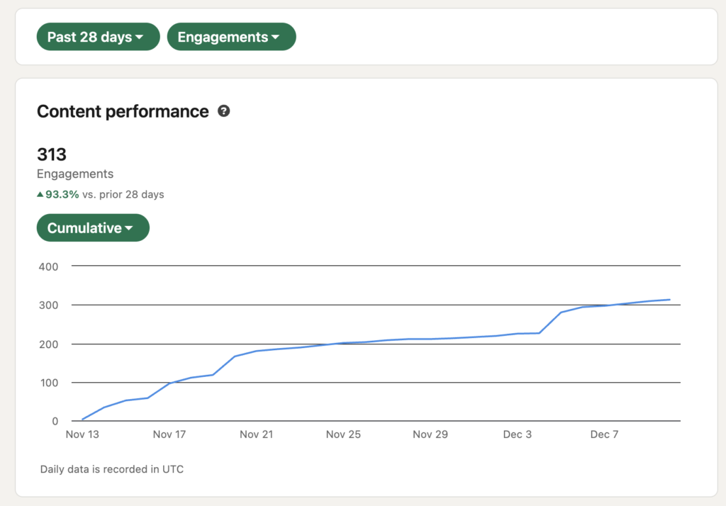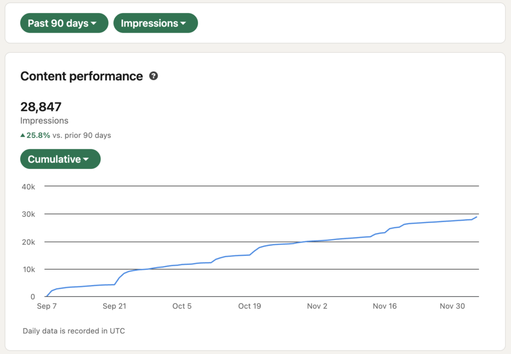 Then it really took root while I was at AZA Finance, building out the Revenue team’s LinkedIn thought leadership to bring in B2B leads. At the time, that was the fastest and easiest way to reach the right people compared to ads. We all knew this. Decision makers in our space were on LinkedIn.